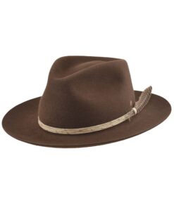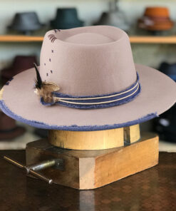 “Handmade from 100% wool felt in the United States, this vintage and unique fedora hat is crafted in an environmentally friendly environment. Each hat is manually processed, aged, fire baked, and painted, resulting in a one-of-a-kind piece. The high-quality Australian wool is breathable and natural, while the sweatband features a non-adjustable synthetic belt with an engraved logo. The package includes two hat paddings to reduce the circumference if needed. Store this hat flat in the provided box to avoid dust and warping. Free shipping is included. This wool fedora hat is perfect for outdoor activities and offers great comfort all day long.”