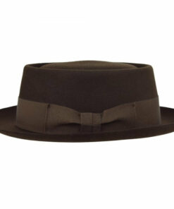 The Classic Pork Pie Fur Felt Hat in Brown, a timeless accessory that combines elegance and style. Crafted from premium fur felt, this hat features a distinctive flat crown and a narrow brim, providing a sophisticated yet casual look.