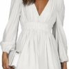 - Features – Mini dress above knee, Sexy deep v dress, Lantern long sleeve dress with soft elastic cuff, A-line casual dresses, Semi formal dresses for women, flowy dress, Elasticated shirring, Lining in bust, Delicate hemline
