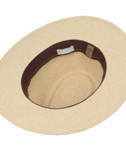 Painstaking handiwork has turned Panama straw into this traveller hat, giving it its characteristic, elegant appearance and, combined with a fast-drying fabric lining band, making it exceptionally comfortable to wear. In addition to this, the straw hat is encircled by a leather trim band, decorated with metal eyelets and a leather band to create a striking finishing touch. The stylish way to round off any summer outfit.