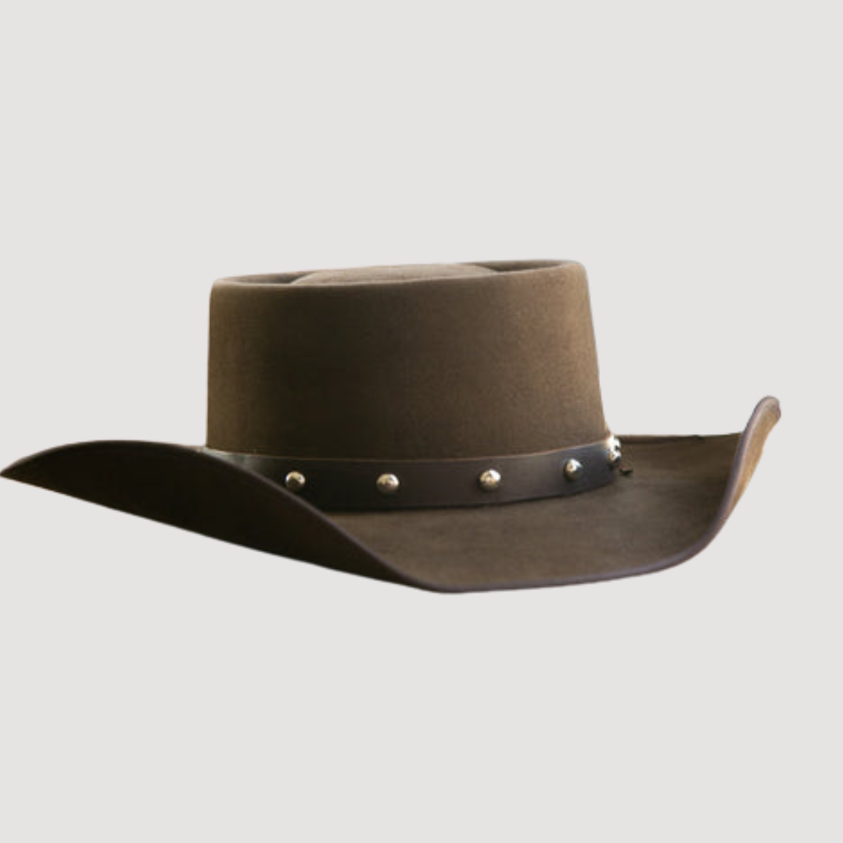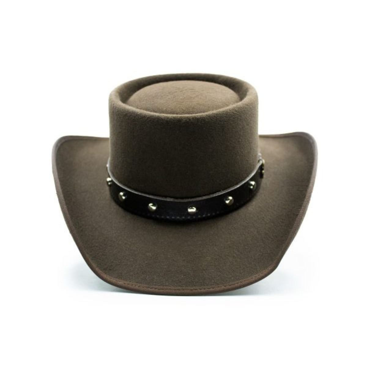- Hatband: Custom 1/2″ leather with conchos