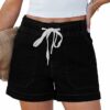 - Womens shorts offer the convenience of a pull-on style with no buttons or zippers. The elastic waistband with a functional drawstring allows for a customizable and secure fit all day long