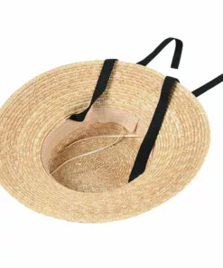 Flat Top Straw Beach Hat with Tie Top