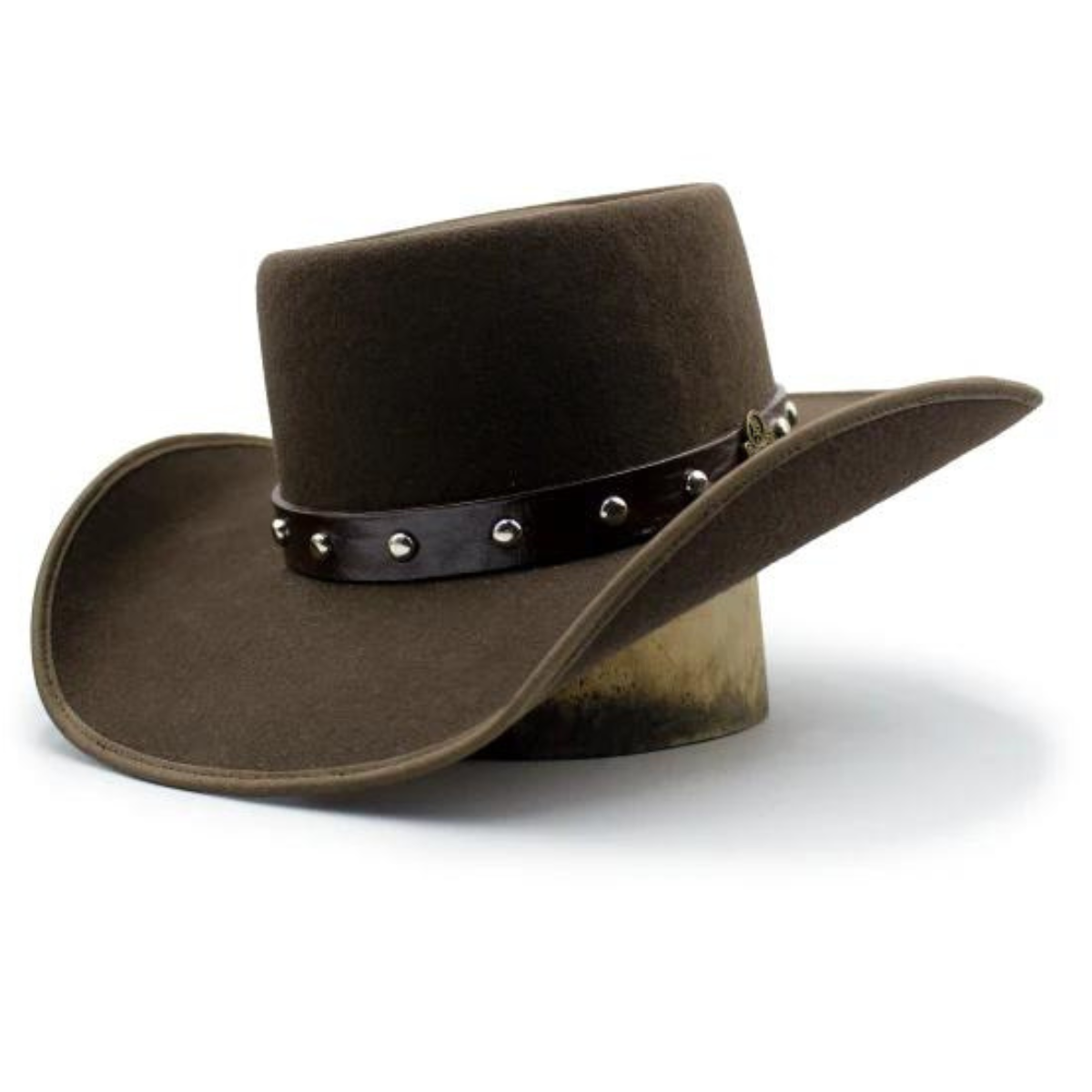 Inspired by the hat we created for Timothy Olyphant as “Raylan Givens” in the Hit Television Series JUSTIFIED, fairly straight forward the Justified hat is a modern rodeo style cowboy hat, with a patterned leather hat band. Justified is a well-done series and unlike anything else on TV. Timothy Olyphant is perfect for the lead role as US Marshal Raylan Givens.