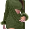 - Chic & Sexy Design: cut out, ruched dress, long sleeve tight dress, sexy club dresses for women, fall mini dress; unique soft-touch fuzzy trim on long sleeves adds luxurious texture and winter-ready glamour.