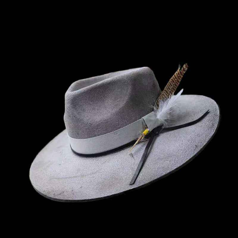 The “Rustic Rebel” fedora in a striking green color with a short brim, featuring 2 feathers and a unique band loop. This hat exudes a rugged yet rebellious charm, perfect for those who dare to defy convention and embrace their individuality.