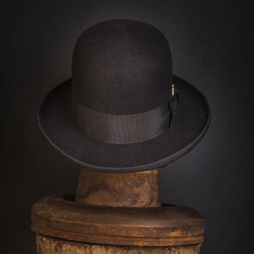 This top hat owes its grandeur to its characteristically high crown with grosgrain ribbon trim and its curved brim. This occasion wear hat is made from high-quality wool felt with a lustrous satin coating. Inside, it is enhanced by a leather lining band. This classic expresses its style-consciousness both in its choice of material and in its perfectly shaped, plain-coloured and shimmering design.
