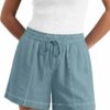 - Womens shorts offer the convenience of a pull-on style with no buttons or zippers. The elastic waistband with a functional drawstring allows for a customizable and secure fit all day long